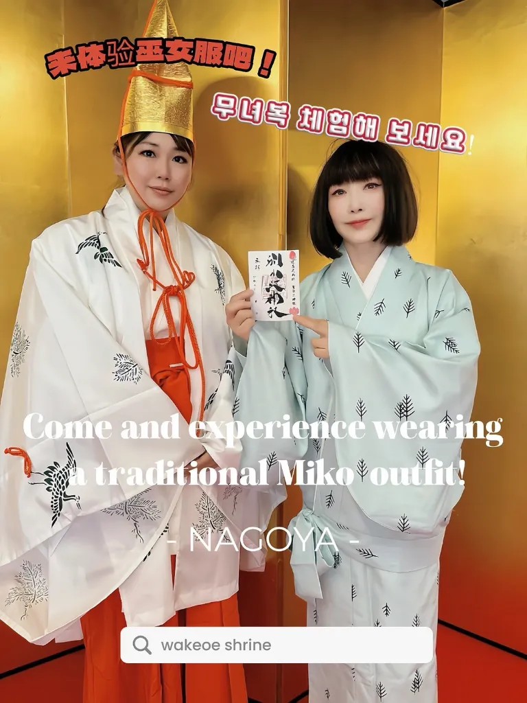 名古屋市北区の別小江神社にて、訪日ツーリストを対象に巫女の装束体験をいたしております。日本の方は対象外となっております。